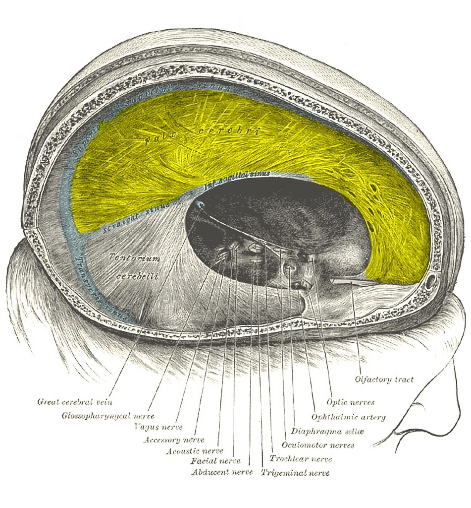 Opona twarda jest najmocniejszą i najbardziej zewnętrzną z trzech opon mózgowych stanowiących wraz z płynem mózgowo-rdzeniowym coś na kształt warstwy ochronnej dla wrażliwych struktur mózgowia. Tworzy ona cztery wypustki – z czego dwie największe, położone względem siebie w przybliżeniu prostopadle to sierp mózgu (rozdziela obie półkule mózgu) oraz namiot móżdżku (rozdziela mózg od móżdżku).